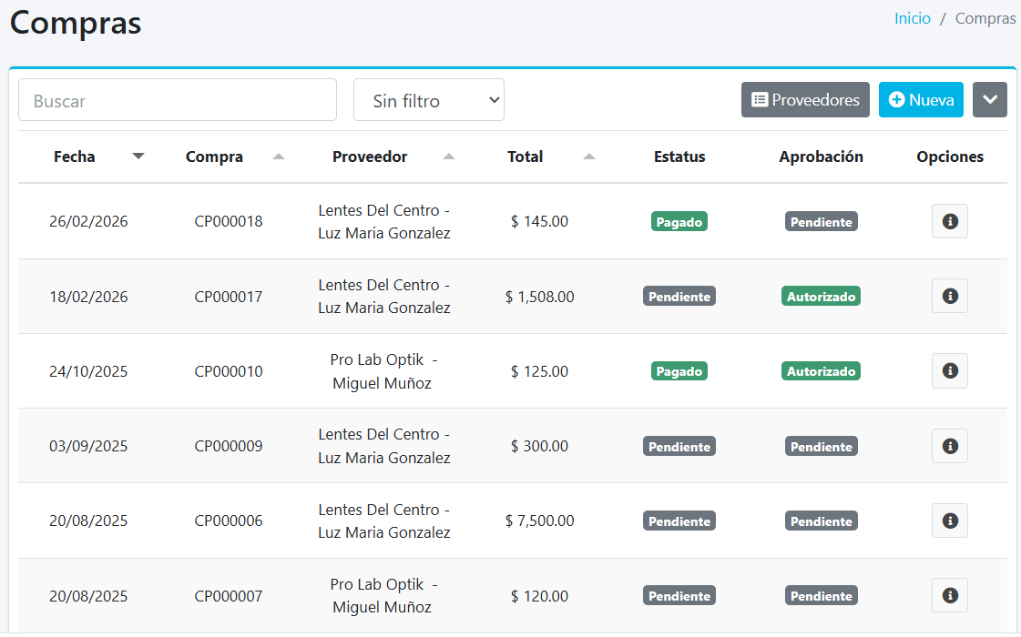 Para realizar esta acción se debe dar clic al botón de Consultar que aparece al final de cada compra del lado derecho.