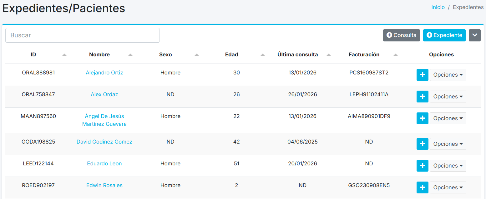 Para localizar rápidamente a un paciente, utiliza la herramienta de búsqueda que se encuentra en la parte superior izquierda del listado.