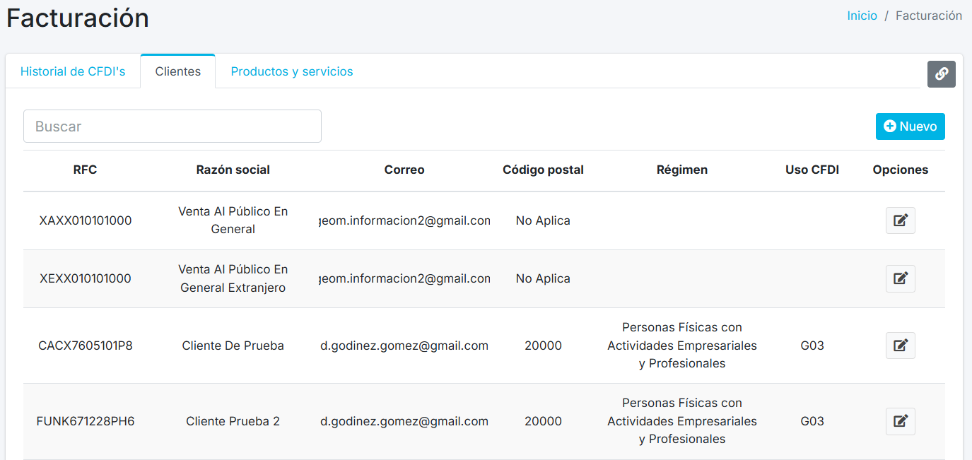Para editar la información del cliente da clic al botón Editar , se abrirá de nuevo el formulario para que puedas editarlo. Una vez terminado dar clic al botón Guardar cambios.
