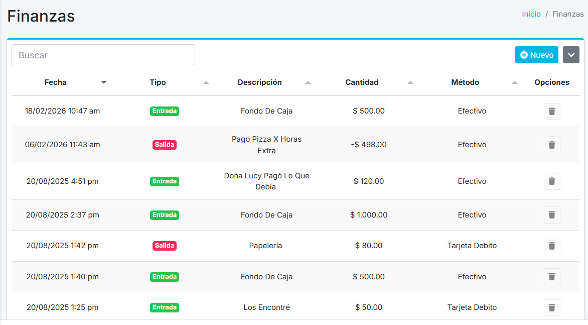 En este módulo se lleva a cabo el control de las entradas y salidas de dinero.