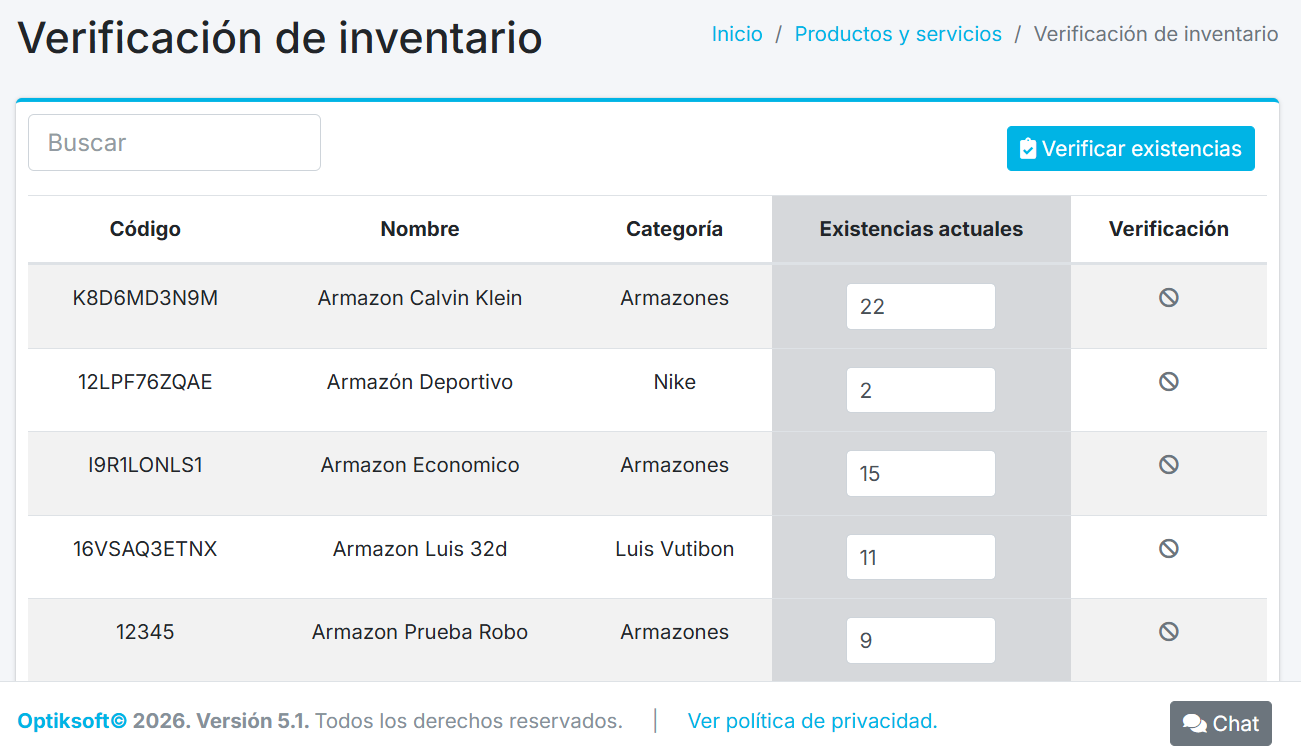 Verificación de Inventario
